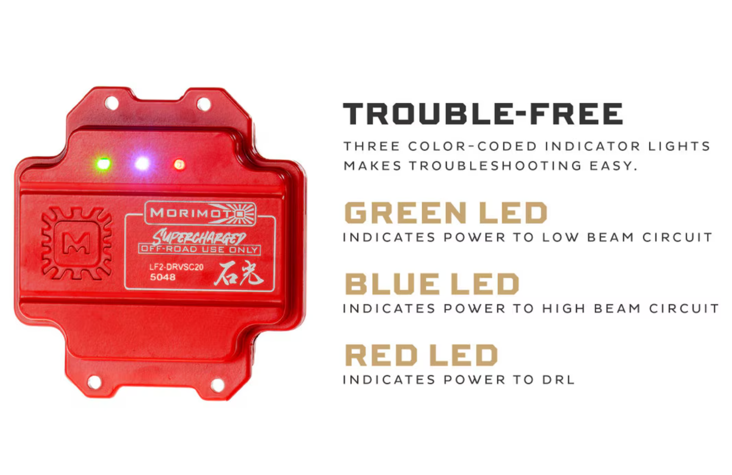Significantly boost the output of Morimoto XB Evo, XB Evo Hybrid, or XRGB Evo Headlights with these simple bolt-on power upgrades. Designed as a direct replacement for the standard LED drivers, these are an easy swap on the back of the headlight housings. While standard drivers are under-powering the LED projectors to keep output DOT compliant, these Supercharged drivers unlock the real potential of your headlights, all without any risk to reliability or the warranty. Because of the increase in brightness though, they are not road legal in the US. Off-road use only!