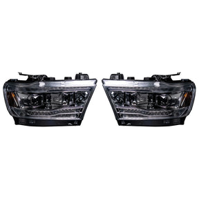 Dodge RAM 1500 19-23 5th Gen LED Projector Headlights OLED DRL Scanning Switchback LED Signals (Replaces Factory/OEM Halogen Only) - CLEAR/CHROME