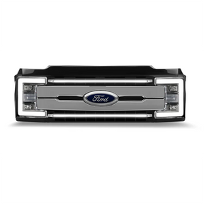 Ultra-bright “Ghost” LED grille light kit for 2017–2019 Ford Super Duty (F-250, F-350, F-450, F-550) trims XL, XLT, King Ranch, and Lariat. The deep-recess design blends flush with the factory grille, hiding the 6,500–7,000K LEDs until they fire up with a crisp DRL glow. The IP67-sealed housings are fully waterproof and dust-proof, rated for 50,000 hours of runtime.
