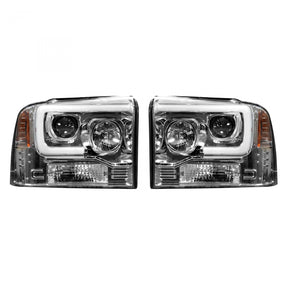 RECON Projector Headlights, specifically designed for 2005-2007 Ford Super Duty trucks. Featuring Ultra High Power Smooth OLED Halos and DRLs, these headlights offer superior illumination and a stylish appearance. Built with military-grade reinforced ABS plastic lenses, these projector headlights are impact-resistant and designed to last. They feature a 50,000+ hour lifespan, ensuring long-term reliability. IP67 waterproof rating, protecting against dust, dirt, water, and snow. They are also UV-treated for protection against direct sunlight exposure, ensuring they remain in top condition in all weather conditions.