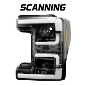Ford Super Duty 17-19 Projector Headlights White OLED DRL, Scanning Amber LED Turn Signals - SMOKED LENS