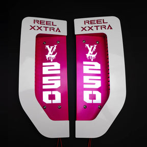 The first ever full replacement emblems that fit the 2017-2022 Super Duty® (F250®, F350® and F450® trucks). These Upload your Own emblems are 100% 304 Stainless Steel and feature customizable colors, text, and illumination options.
