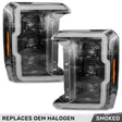 Ford 23-26 Super Duty (F250, F350, F450, F550) Full LED Projector Headlights Ultra High Power White OLED DRL & Scanning Amber Turn Signals w/ Startup Light Sequence - Smoked / Black