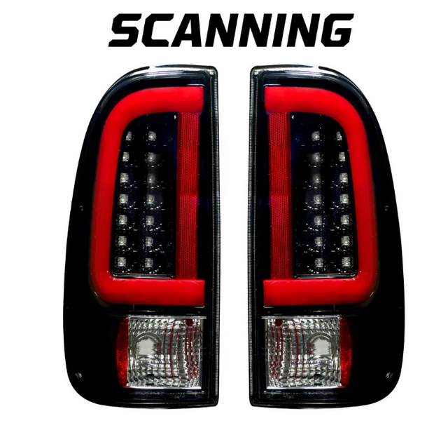 Ford Superduty F250 F350 F450 F550 F650 99-07 & Ford F150 97-03 Straight aka "Style" Side SCANNING LED Tail Lights - Smoked Lens