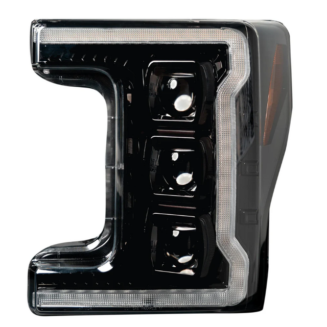 Ford Superduty 20-22 F250 / F350 / F450 / F550 (Replaces OEM Halogen Style Head Lights Only) TRIPLE PROJECTOR BEAM LED HEADLIGHTS w/ Ultra High Power Smooth White OLED DRL & High Power Smooth Amber Sequential OLED Turn Signals - Smoked / Black