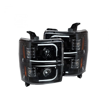 Chevy Silverado 1500 14-15 Projector Headlights OLED Halos, DRL Smoked/Black