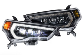 Experience the Morimoto XB LED Headlights designed specifically for 2021-2024 Toyota 4Runners. These headlights represent a significant upgrade from traditional halogen options, boasting a sleek design, robust build quality, and an extended lifespan. The latest Gen 2 version enhances light output with three projectors for low beams and a dual Bi-LED setup, delivering 33% more light in low beam mode and 100% in high beam mode. They meet and exceed all SAE, DOT, and FMVSS108 regulations, ensuring optimal performance and safety when properly adjusted. Installation is hassle-free with plug-and-play functionality, utilizing factory connectors without modifications. Featuring Osram 5000K LEDs for the daytime running lights and a full sequential turn signal, these headlights combine style with functionality. Constructed with UV-coated polycarbonate lenses and PPS plastic housing, they promise durability and aesthetic longevity. Morimoto XB LED Headlights are the definitive choice for enhancing visibility and style in your 4Runner.