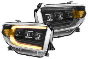 The Morimoto XB LED Headlights for the 14-21 Toyota Tundra, designed to elevate your truck's lighting performance. These headlights boast a significant improvement in brightness, with 33% more light output in low beam and 100% more in high beam, resulting in enhanced visibility during night driving and cornering. The dual Bi-LED setup and triple-projector optics meet and exceed all necessary regulations, ensuring safe and DOT-approved usage. Installation is a breeze with a plug-and-play design that connects seamlessly to your Tundra's factory connectors, eliminating the need for modifications. These headlights offer a captivating start-up sequence and are available with a choice of white or all-amber Sequential LED Daytime Running Lights, powered by Osram LEDs for exceptional brightness. Built to last, the UV-coated polycarbonate lens, lightweight PPS plastic housing, and efficient die-cast aluminum heat-sinks guarantee long-lasting performance. Upgrade your truck's lighting with the Morimoto Gen II XB LED Headlights and experience superior illumination and style.