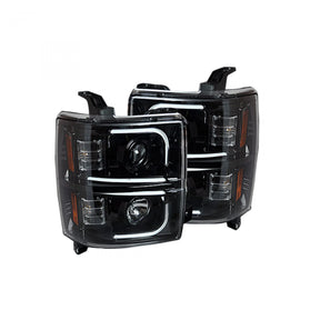 Chevy 14-15 Silverado 1500 Projector Headlights OLED Halos, DRL - SMOKED/BLACK
