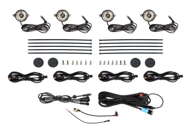 Introducing the Morimoto Rock Light Kit --the ultimate solution for adding a dazzling touch to your vehicle! This kit boasts top-tier performance, intensity, and reliability, fulfilling all your expectations. Specifically designed for popular trucks and SUVs in the USA, our rock light system is hassle-free, eliminating the guesswork common in other kits. Our second-gen rock lights are exceptionally bright, with 12x 1W LEDs per puck, ensuring well-lit trails and city streets alike. Installation is a breeze, thanks to integrated mounting points and robust magnetic mounts. The plug-and-play wire harness simplifies control, and we provide extension cables for a perfect fit on any vehicle. Rest easy with our lifetime limited warranty. The Morimoto Rock Light system is built tough, featuring powder-coated diecast housings and a durable Makrolon Polycarbonate lens. Elevate your vehicle's style and visibility --choose Morimoto today!