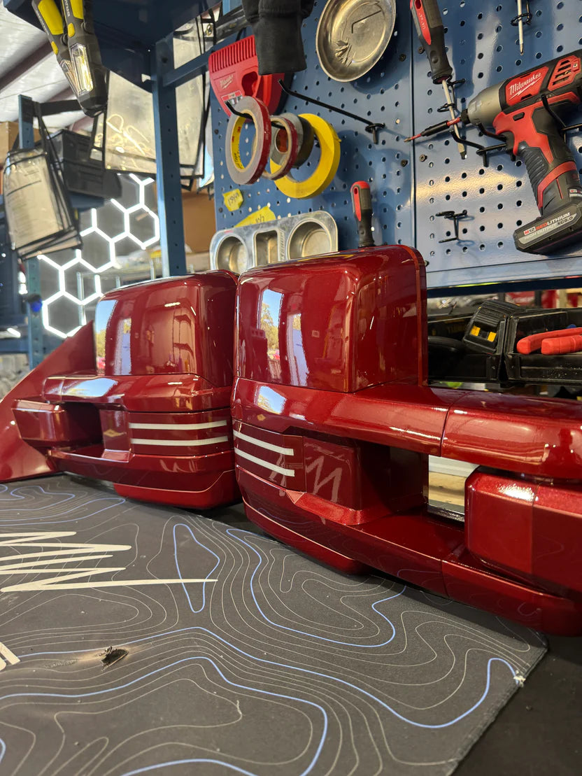 Your mirrors will be completely sanded smooth, then professionally painted to match your vehicle. Your vehicle’s paint code will be requested. If you do not have it – please provide your VIN number.