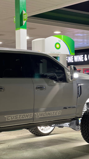 “Customs Unlimited” outline in chrome. Sold in a set for both sides of the vehicle.