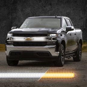 Introducing our Universal LED Grill Light Bar - a must-have addition for the grill of your car, truck, or UTV. With a vibrant start-up animation and white DRL, you’ll be visible day and night. The sequential amber LED turn signals seamlessly sync with your factory lights, enhancing safety and adding style.