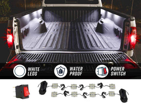 LEDGlow 8pc Truck Bed LED Lighting Kits illuminate the entire bed of your Powerstroke, Cummins, Duramax and other trucks with the flip of a switch. Keep working after dark without holding a flashlight or plugging in a portable work light. These LED truck bed lights include (2) separate strands with (4) truck pod lights each and (6) SMD LEDs per pod. That’s a total of (8) pods and (48) ultra-bright white SMD LEDs to keep you on the job after sundown.