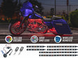 The Advanced Million Color Motorcycle LED Kit features ultra-bright 4”, 8” and 10” flexible lighting strips with surface mounted 5050 SMD LED technology. Select a 6pc kit all the way up to a 30pc kit. This motorcycle light kit includes a waterproof Control Box and (2) 4-Button Wireless Remotes.