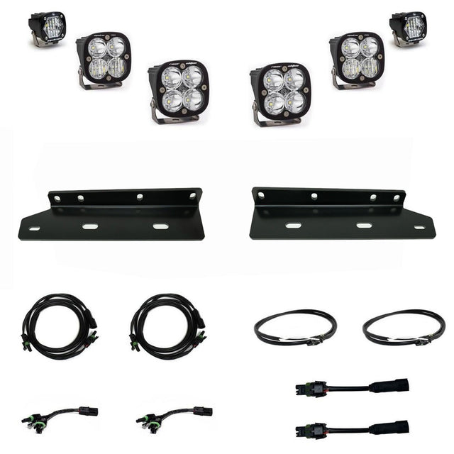 The Baja Designs “Unlimited” fog pocket light kit for the 2021-2025 Ford Raptor is the ultimate fog light kit for the trails. Designed for max visibility and performance, this all-in-one kit is the perfect fog light option for those looking to take their lighting to the next level. This LED light kit utilizes two Squadron Pros with 4,095 lumens each, two Squadron Racers with 2,800 lumens of distance illumination and two S1s offering 2,320 lumens for exceptional trail illumination while navigating through challenging terrain. Packaged with everything you need to install and hit the trails without spending too much time in your garage, this kit includes two vehicle specific mounting brackets and wiring harnesses that allow use of your factory switch.