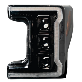 Ford 20-22 Super Duty LED Triple Projector Headlights w/ Ultra High Power White OLED DRL & Scanning Amber LED Turn Signals (Replaces OEM Halogen Style Only) SMOKED/BLACK