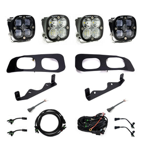 The Baja Designs Squadron SAE/Squadron Sport fog pocket kit for the 2023-on Ford F-250/350 Super Duty will separate your truck from the rest of the pack, offering a road-legal solution and off-road capabilities in one package. Enhance your stock fog lights with one of our versatile four-light kit, complete with mounting brackets, an option for a toggle switch or upfitter wiring harness, and all essential components for a hassle-free installation. Our fog pocket kits have been designed specifically for the 2023-on Super Duty trucks, improving visibility on the trail and safety in conditions such as dust, fog, rain or snow. For the best road legal visibility, the Squadron® SAE delivers 2,420 raw lumens per light at just 29 watts. Designed to meet the current SAE J583 fog lamp requirements, the Squadron® SAE is fully compliant with on-road regulations and will illuminate Zone 1 with a controlled, sharp cutoff from the combination of the new LED technology and highly efficient aspheric projector optics. This innovative approach allows for a highly controlled light pattern with a sharp cutoff, making them an ideal choice for driving through dust, fog, and inclement weather. When you turn off the road and on to the dirt, the Squadron Sport offers 3,162 raw lumens each to illuminate zones 1-3 while on the trails. This makes your driving experience safer and more enjoyable.