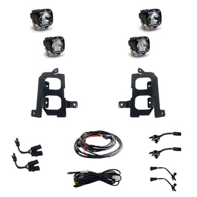 The Baja Designs Fog Pocket kit is the perfect mix of high-quality on and off-road performance for your GMC Sierra 1500. Available in White or Amber, this kit utilizes the factory fog pocket location to pack two S1 lights on each side producing 2,320 raw lumens at 19w. This kit is controlled by the factory fog switch to operate the lower pair S1 lights. The upper pair of S1 lights are operated by your high beams. The included wiring harness is designed to be used in conjunction with factory light switches, or a switch power management unit. If you're looking to add not only safety but lighting performance this is your kit!