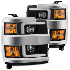 Adding to their versatility, these Chevrolet Silverado 2500HD/3500HD LUXX-series headlights feature a chrome center piece that can be customized with paint to seamlessly match your grill. Positioned at the sides are amber reflector lenses, accompanied by halogen bulbs for signal light functionality. The top projector handles low beam functionality, while the bottom projector provides high beam illumination. For their lighting elements, the headlights utilize Built-in AlphaRex Luxx LED for both low beam and high beam applications.