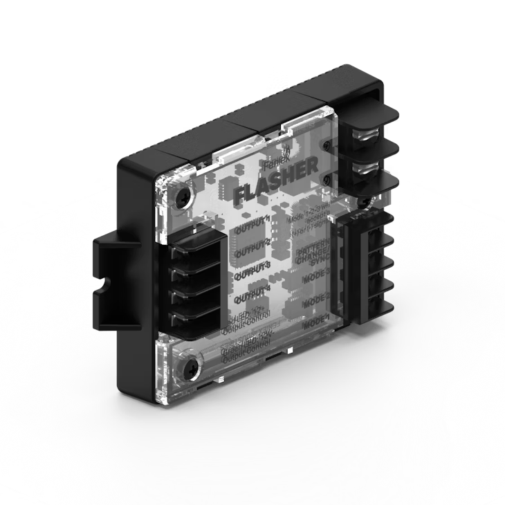 The Feniex 4X Flasher is a versatile four-channel LED flasher that offers fourty flash patterns in a compact device. Its solid-state design allows for compatibility with both positive and ground switched LED modules. Compatible with all emergency response vehicles, the Flasher's three modes makes it flexible enough to function as both a warning and/or indication controller.