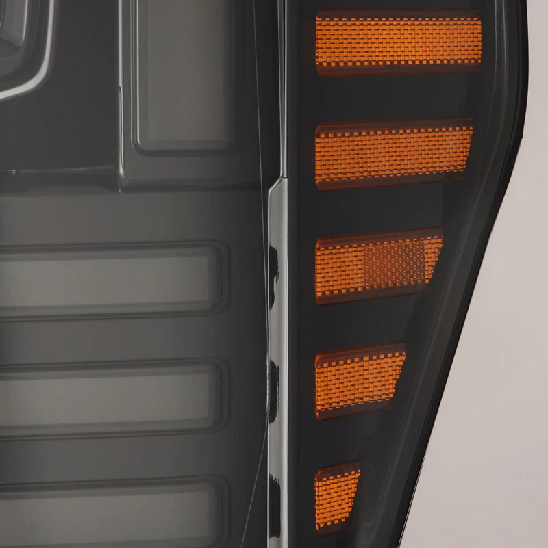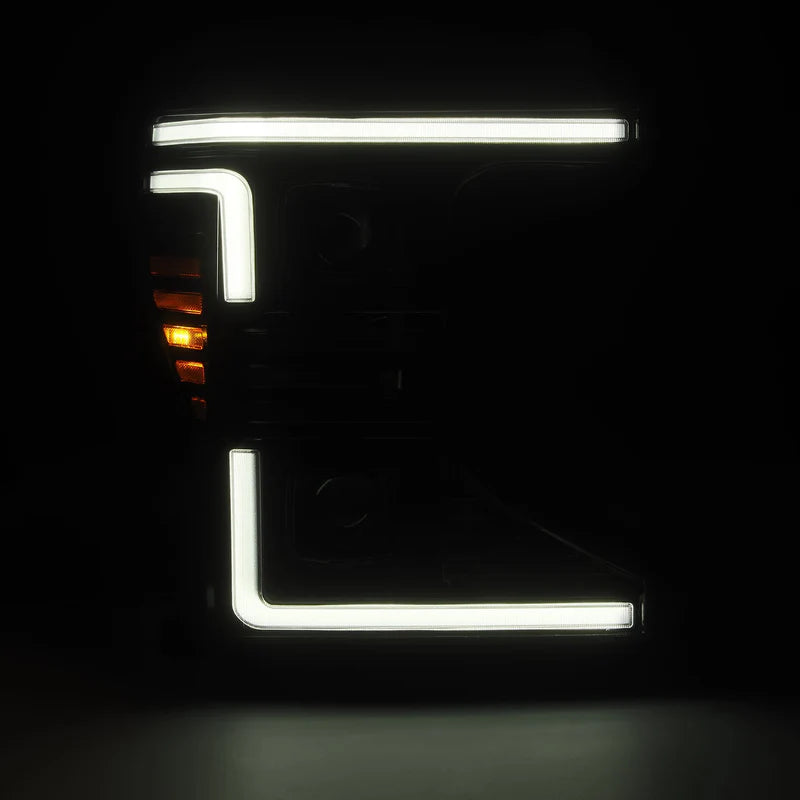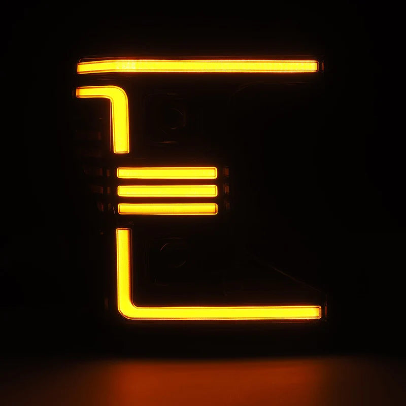 Engineered for both form and function, these headlights incorporate switchback LED light tubes around the main projector, serving as dynamic DRLs and sequential turn signals, providing a modern and attention-grabbing lighting signature. The AlphaRex signature three-line signal lens in the center further enhances visibility, ensuring clear signaling while adding a distinctive design element that sets your Super Duty apart.