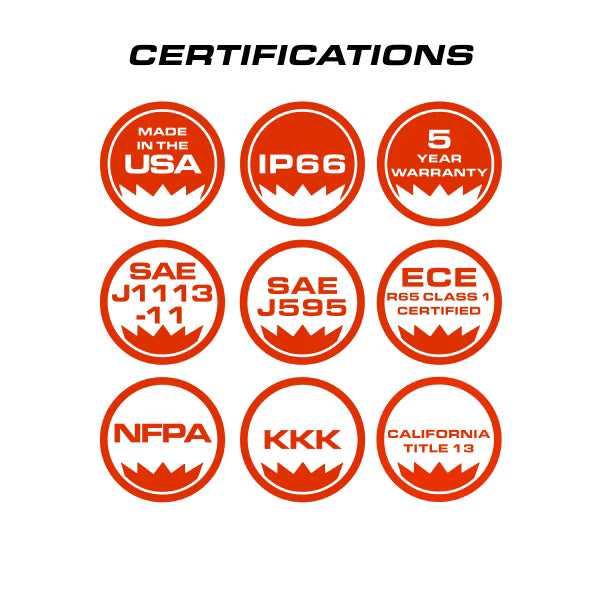 -Meets all SAE, CT13, KKK, NFPA, ECE R65 requirements